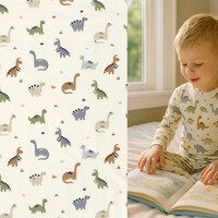 Baumwolljersey Dino Zayra ist ein gestrickter Baumwolljersey-Stoff, der weich und bequem ist. Diese Strickstoffe sind dehnbar und angenehm auf der Haut. Es ist ein beliebter Stoff für Kinder- und Babykleidung. Ob T-Shirt, Rock, Kleid oder Leggings – Jerseystoffe sind vielseitig einsetzbar!