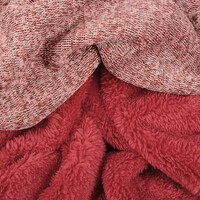 Sweatstoff Gestrickt, Bunt Melange Rot ist ein wunderbar weicher und bequemer Stoff für die entspannten, kälteren Tage im Herbst und Winter. Der Gestrickter Joggingstoff hat eine dreifarbige Seite aus gestricktem Fleece und eine pelzige Seite. Dieser trendige Stoff ist ein Muss für Ihre Garderobe. Der ideale Stoff für einen warmen Hausanzug, einen Pullover, eine Strickjacke oder einen Pullover.