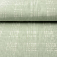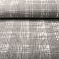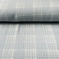 Double Gauze Fabric Check Blue Grey is a double woven cotton fabric that absorbs moisture very well. With further properties such as breathability, light weight, soft and skin-friendly, it is a very suitable fabric for baby clothes or blankets. The structure of the fabric is recognizable by the wrinkled effect. It is also called the crinkle effect.