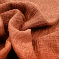 Double Gauze Fabric Mocha Brown is a double woven cotton fabric that absorbs moisture very well. With further properties such as breathability, light weight, soft and skin-friendly, it is a very suitable fabric for bedding or a shirt. The structure of the fabric is recognizable by the wrinkled effect. It is also called the crinkle effect.