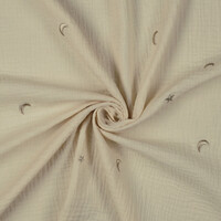 Double Gauze Moon and Stars Off-White is a beautiful hydrophilic fabric.