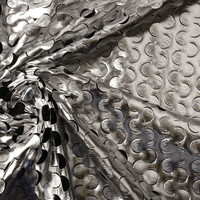 Lamé Rondo Silver is a high-gloss, thin and flexible fabric. Lamé fabric is often used in party and theater outfits, carnival outfits and accessories. The fabric mainly consists of polyester with a small percentage of elastane, which ensures stretch. Lamé is heat sensitive and not breathable. Because the fabric is thin and light, it feels comfortable. With Lamé fabric it is important to know that you are not allowed to wash, dry and iron it.