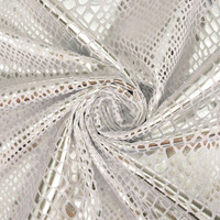 Lamé Snake Print Silver is a foil fabric with a glittering snake print. It is a stretchy and comfortable fabric for a festive outfit. The shiny snake foil makes this fabric an eye-catcher for Carnival or a party, for example. The elastane in the fabric makes it stretchy. Lamé does not breathe and is heat-sensitive, but still feels pleasant because of its light, fine and soft structure. Note: Do not wash, dry or iron Lamé.