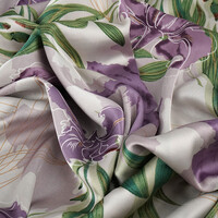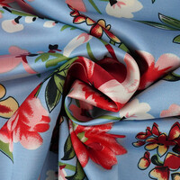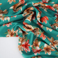 Stretch Satin Printed Flowers Ysabeau is a subtly shiny and supple floral fabric for any special occasion. A beautifully woven fabric for comfort and a glamorous flair. Dare to shine in a breathtaking dress or skirt.