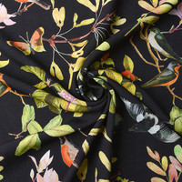 Viscose Digital Birds and Butterflies Dark Old Pink