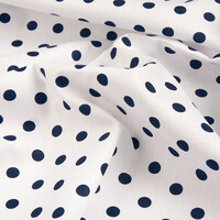 Poplin Dots Wit Marine is een 100/% katoen geweven stof met stippen. Deze ademende en huidvriendelijke stof is perfect voor al jouw naaiprojecten. Of je nu beddengoed, lakens of kleding voor baby's, kinderen of dames maakt. Speel met deze creatieve patronen en maak een luchtige blouse, jurk, rok of broekje voor warmere dagen. De stof is ideaal te combineren met een effen stof katoen.