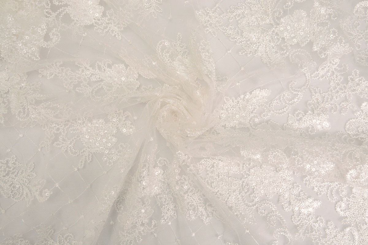 Netz Bestickt Pailletten Quenya Off-White