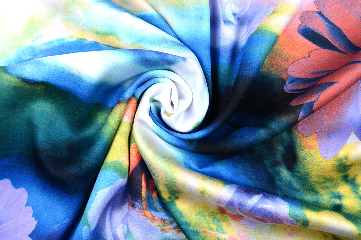 100% Viscose Digitaal Print Gerbera en Rozen Blauw is een lichte en ademende stof, die zeer comfortabel en stijlvol is voor jouw kleding.